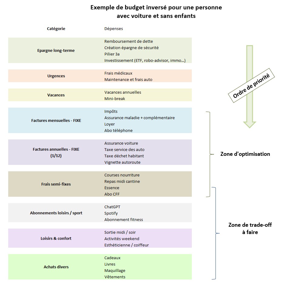 Un budget inversé met l’épargne en haut… et les arbitrages en bas.